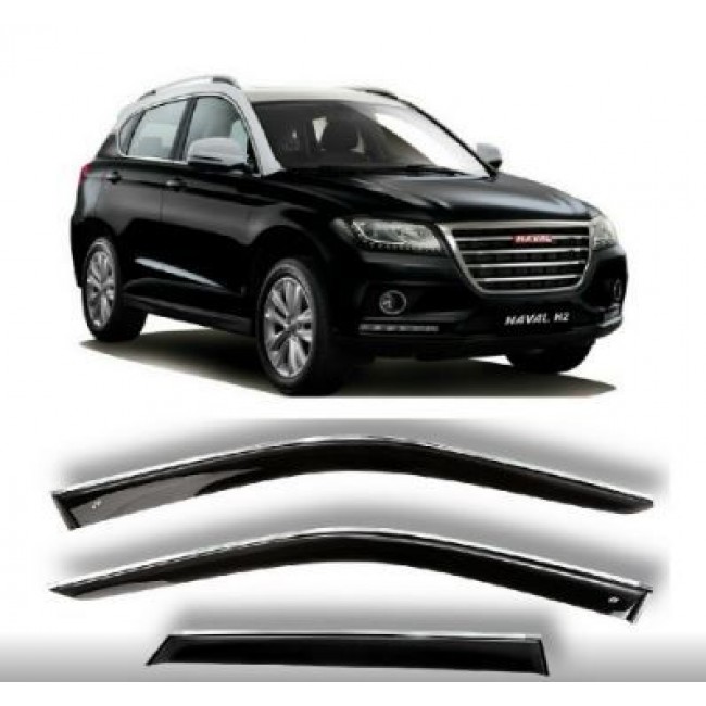 Дефлекторы окон (ветровики) Haval H2 хром (Код#Дефлектори вікон Haval H2 хром )